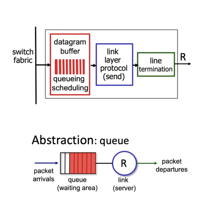 - 버퍼에 저장하는 이유는 link의 transmission rate R보다 switch fabric의 처리 속도 N*R가 빠를 수 있기 때문이다
