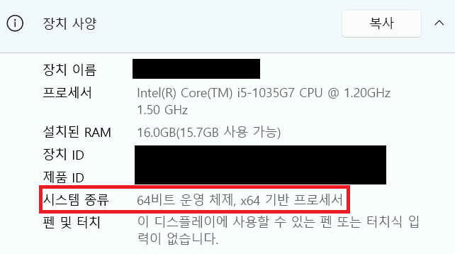 노트북은 x64 Architecture를 사용하고 있네요!!