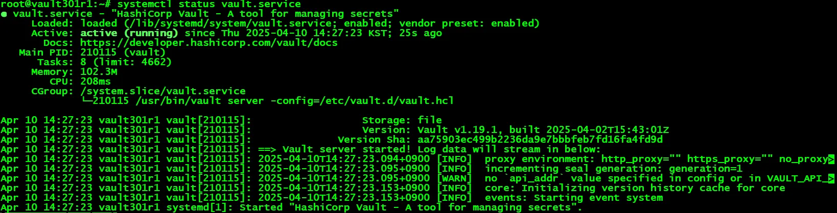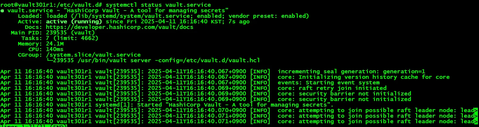 같은 방식으로 3EA 서버에 Vault 세팅 진행하면 됩니다