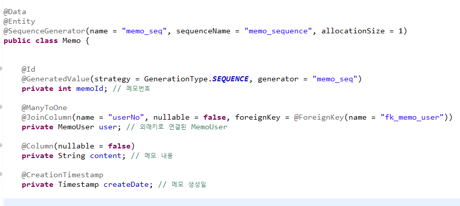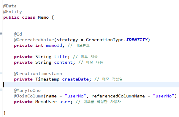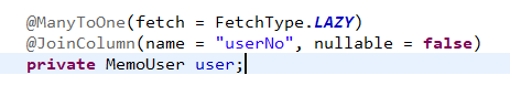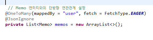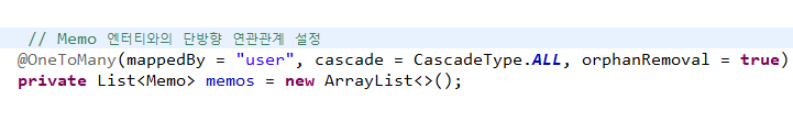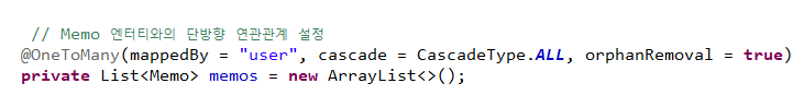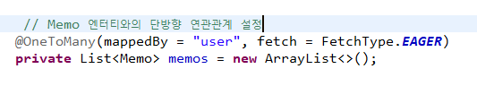 유저 테이블에서 memo 엔티티 연관관계 설정 추가