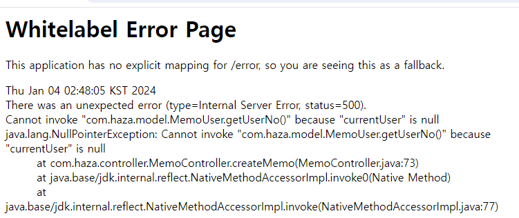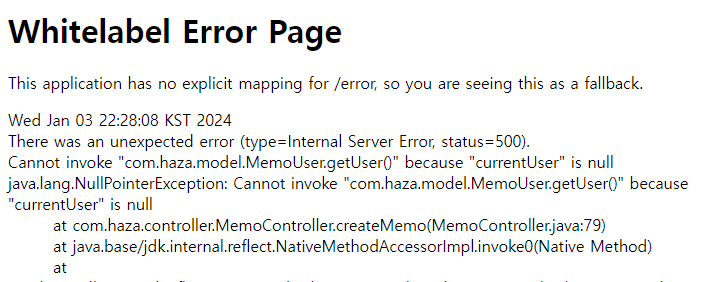 메모 저장을 시도하면 작성한 유저의 정보가 메모 테이블에 같이 저장되어야 하는데