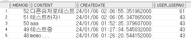 드디어 메모 저장이 될 때 유저 번호도 저장되고 있다 !!! 얏호