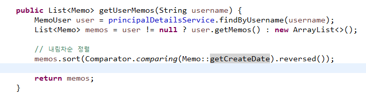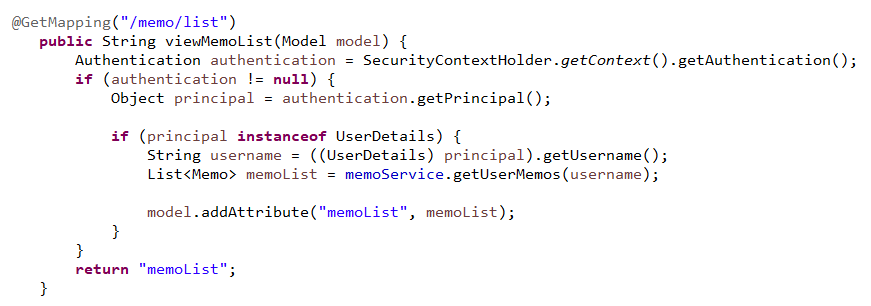 사용자의 로그인 정보를 확인하고 검증하는 방식이었는데 이 방법으로도 null에서 벗어나진 못했다.