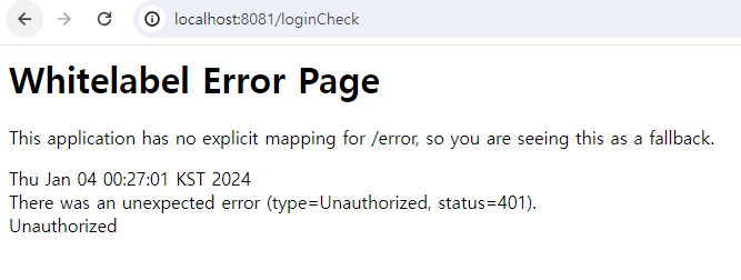 기쁨도 잠시 테스트하려고 재실행하고 로그인 시도하니 오류가 발생했다.