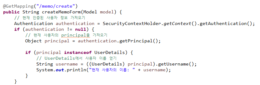 @AuthenticationPrincipal을 사용하지 않고 임시로 해결된 방법 !