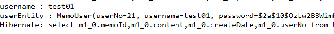PrincipalDetailsService 클래스에서 username과 , userEntity 값을 확인해보면