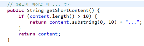 전에 수업에서 리스트에 10글자 이상일 때의 처리를 jsp에서만 작성했었는데