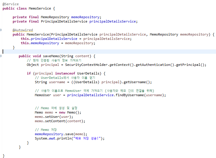 왜 memo와 관련된 기능에서는 로그인한 유저의 정보를 null로 담는걸까 ?