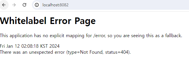 프로젝트에 설정한 포트번호 8082와 메인페이지 경로를 넣어주었다.