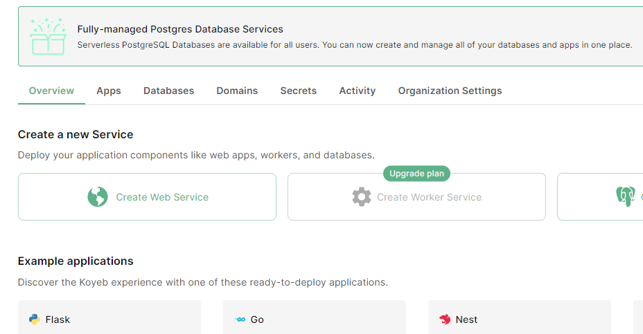 Koyeb를 사용하면 도커 이미지나 깃허브 레포지토리를 통해 애플리케이션을 배포를 할 수 있다고 한다.