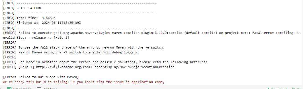 Maven이 Java 컴파일러 버전을 지정하는 데 사용하는 --release 옵션이 잘못되었거나 지원되지 않는 버전으로 설정되었을 때 발생할 수 있다는 답변이 돌아왔다.