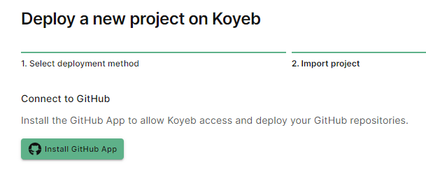 install github app 클릭해서 깃허브와 Koyeb를 연동