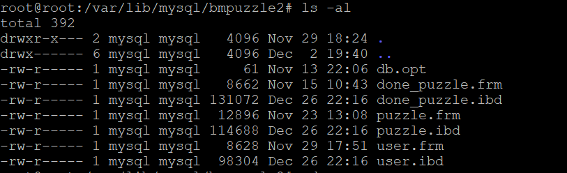 실제 진행한 프로젝트의 ibdata1과 .ibd, .frm