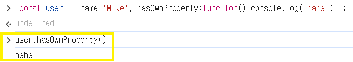 console.log(user.hasOwnProperty('name')); // true