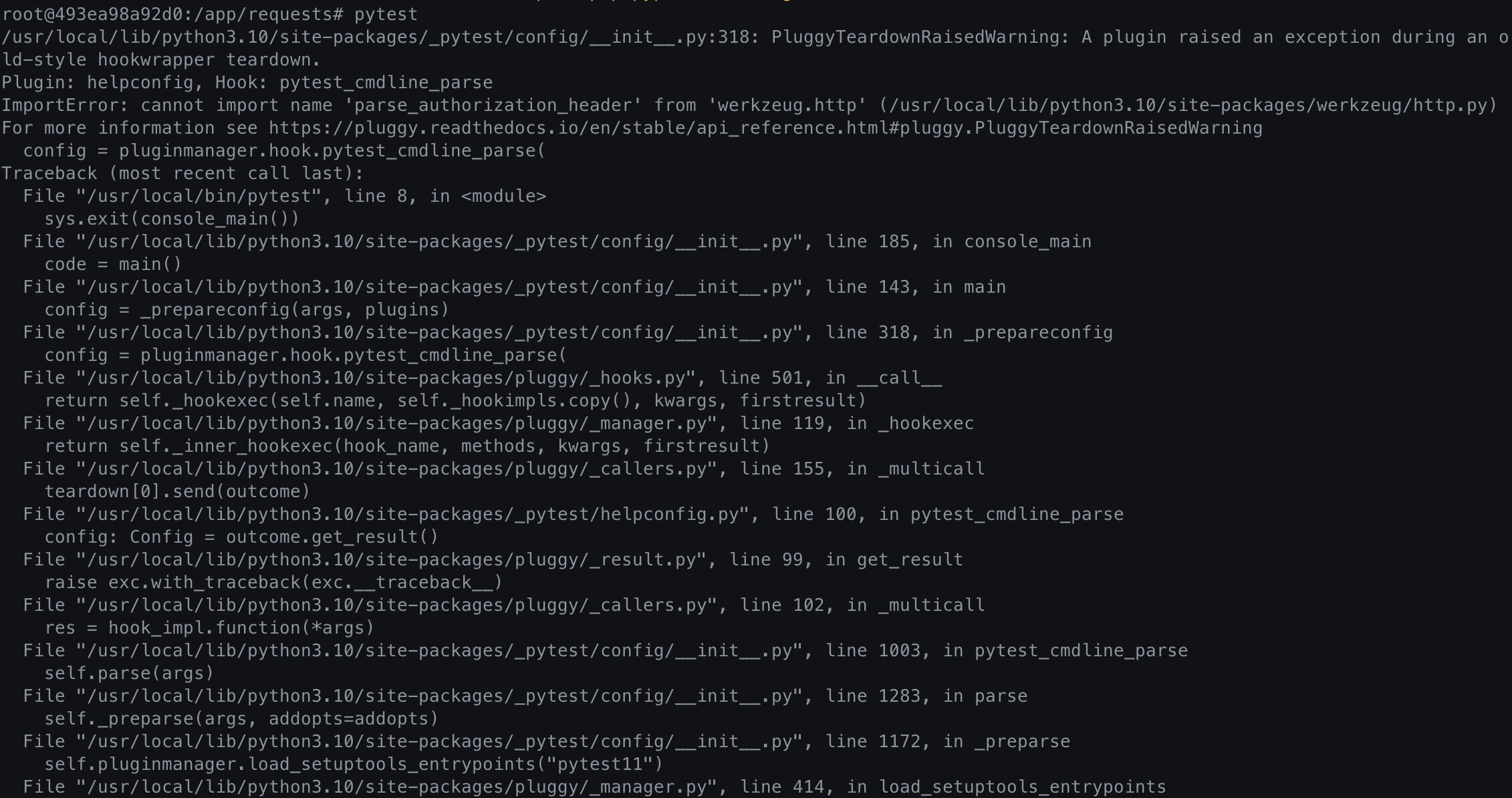 /Users/parkgwanbin/.pyenv/versions/3.10.13/lib/python3.10/site-packages/_pytest/config/__init__.py:318: PluggyTeardownRaisedWarning: A plugin raised an exception during an old-style hookwrapper teardown.