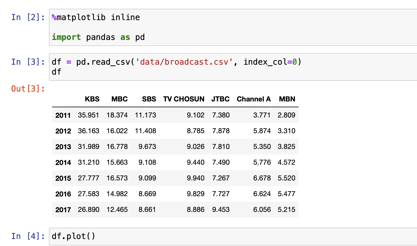 pandas의 plot 메소드에는 파라미터로 kind를 넘겨줘야함.