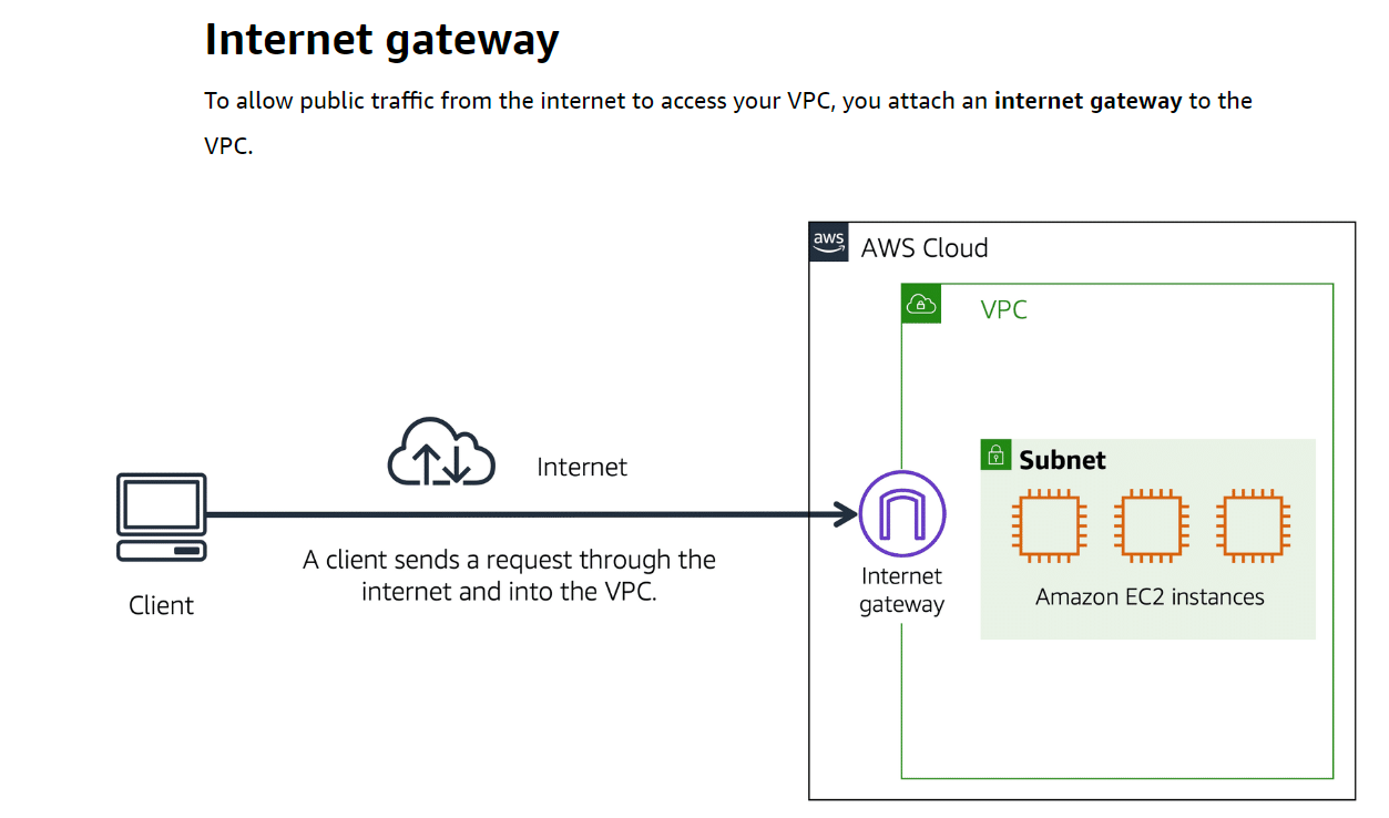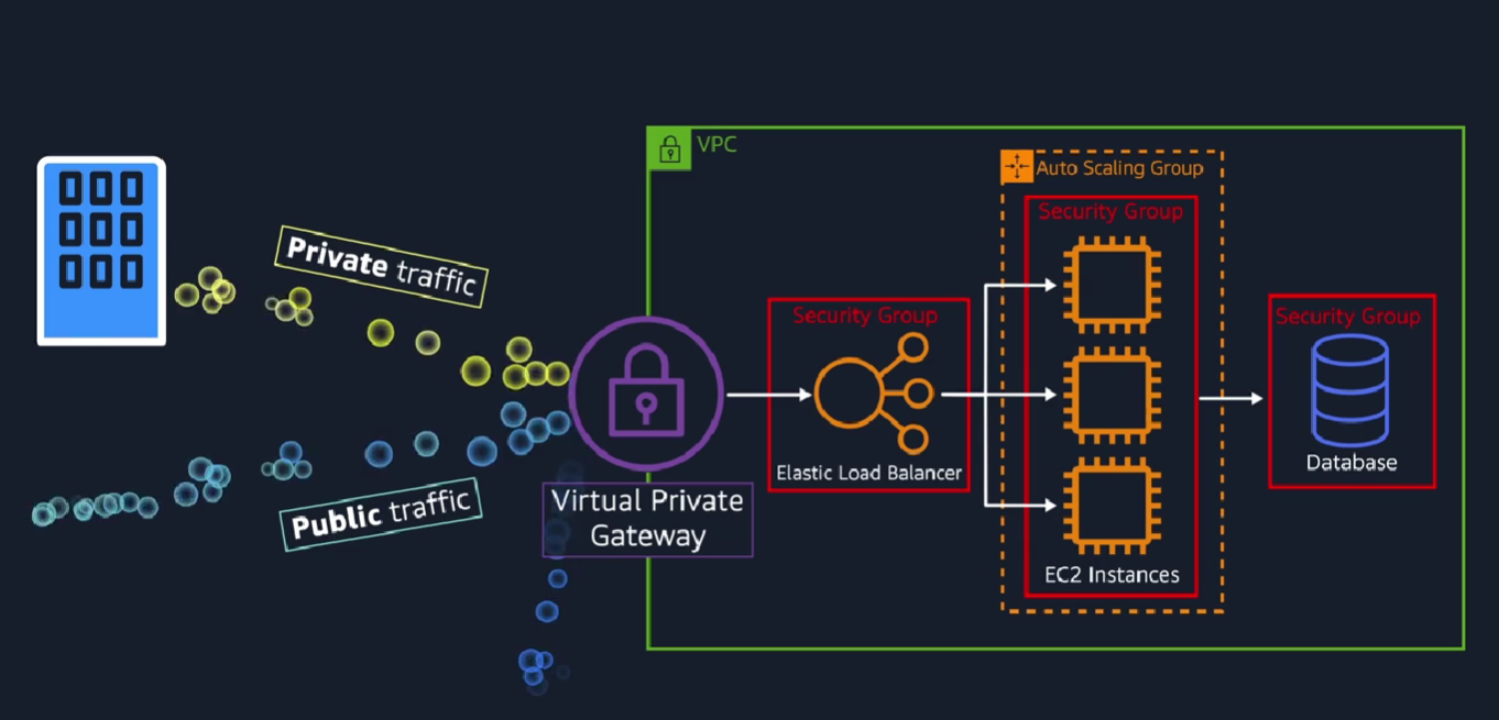 The virtual private gateway is the component that allows protected internet traffic to enter into the VPC. Even though your connection to the coffee shop has extra protection, traffic jams are possible because you’re using the same road as other customers.