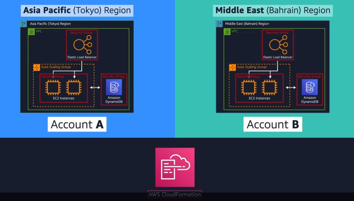 CloudFormation supports many different AWS resources from storage, databases, analytics, machine learning, and more. Once you define your resources in a CloudFormation template, CloudFormation will parse the template and begin provisioning all the resources you defined in parallel. CloudFormation manages all the calls to the backend AWS APIs for you. You can run the same CloudFormation template in multiple accounts or multiple regions, and it will create identical environments across them. There is less room for human error as it is a totally automated process.
