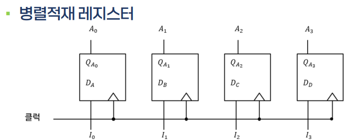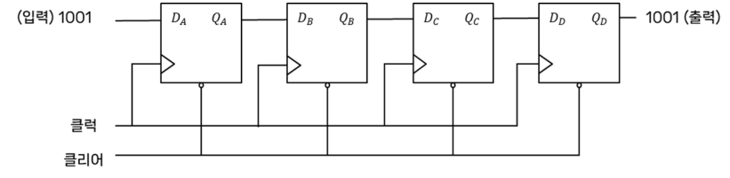 - 레지스터에 클럭 펄스가 입력되면 4개의 입력 데이터가 병렬로 적재