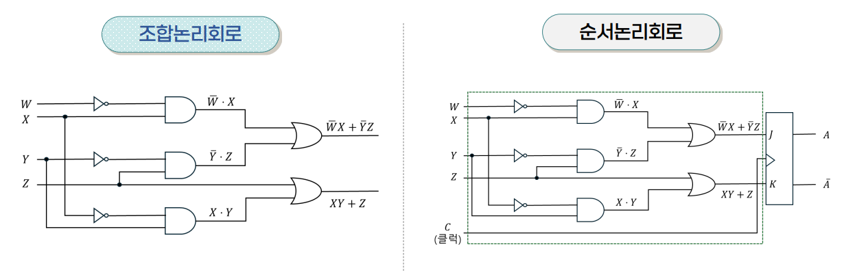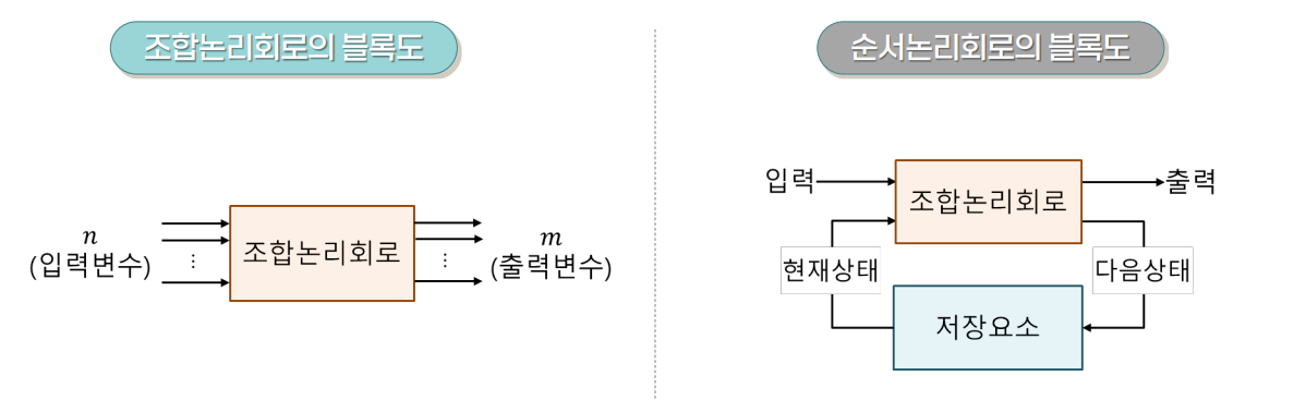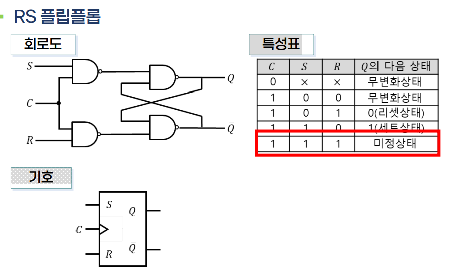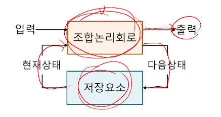 - 현재 입력과 이전 입력 상태(저장 요소의 상태)에 의해서 출력이 결정되는 논리회로