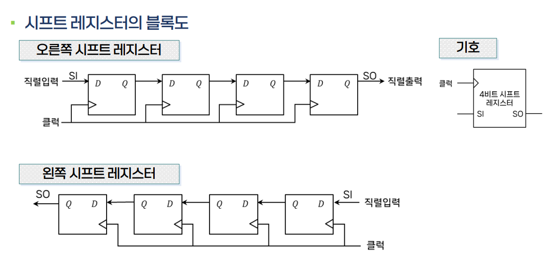 - 레지스터에 저장된 값에 대해 한 방향 또는 양방향으로 저장된 값의 위치를 이동시킬 수 있는 레지스터