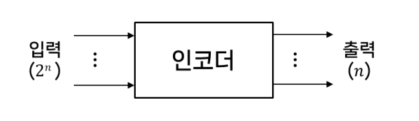 - 인코더는 2^n개의 입력과 n개의 출력을 가지며, 입력값에 대응하는 2진 코드를 출력 값으로 생성함