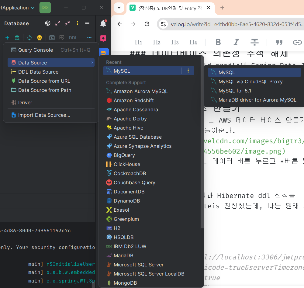 인텔리제이 우측에 있는 데이터 버튼 누르고 +버튼 눌러서 만들면 됨.
