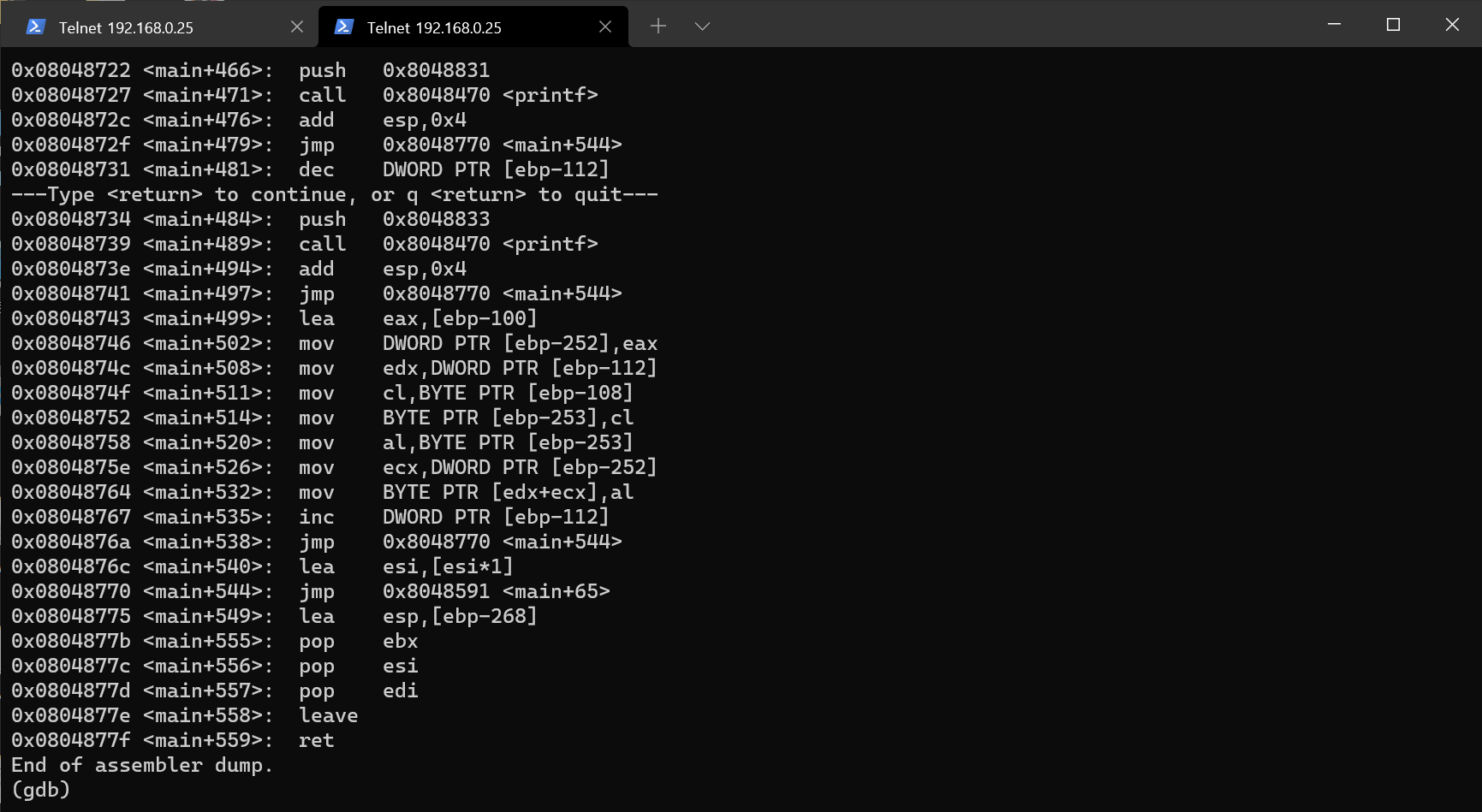 jmp를 통해 0x8048770으로 이동하는 부분이 많이 보인다. 이것들이 break문이다.