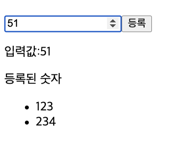 - 숫자를 입력하면 입력한 숫자가 표시되고, 등록 버튼을 클릭하면 등록된 숫자들을 리스트로 출력하고 입력창에 내용을 지우고 포커스를 이동