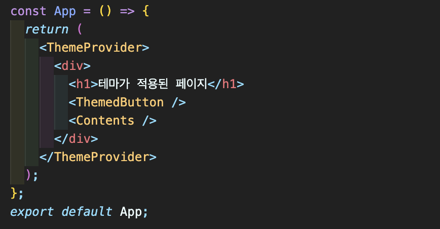 <ThemeProvider> 로 감싸고, props 변수 삭제