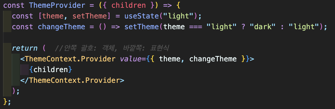 <ThemeContext.Provider value={{ theme, changeTheme }}>