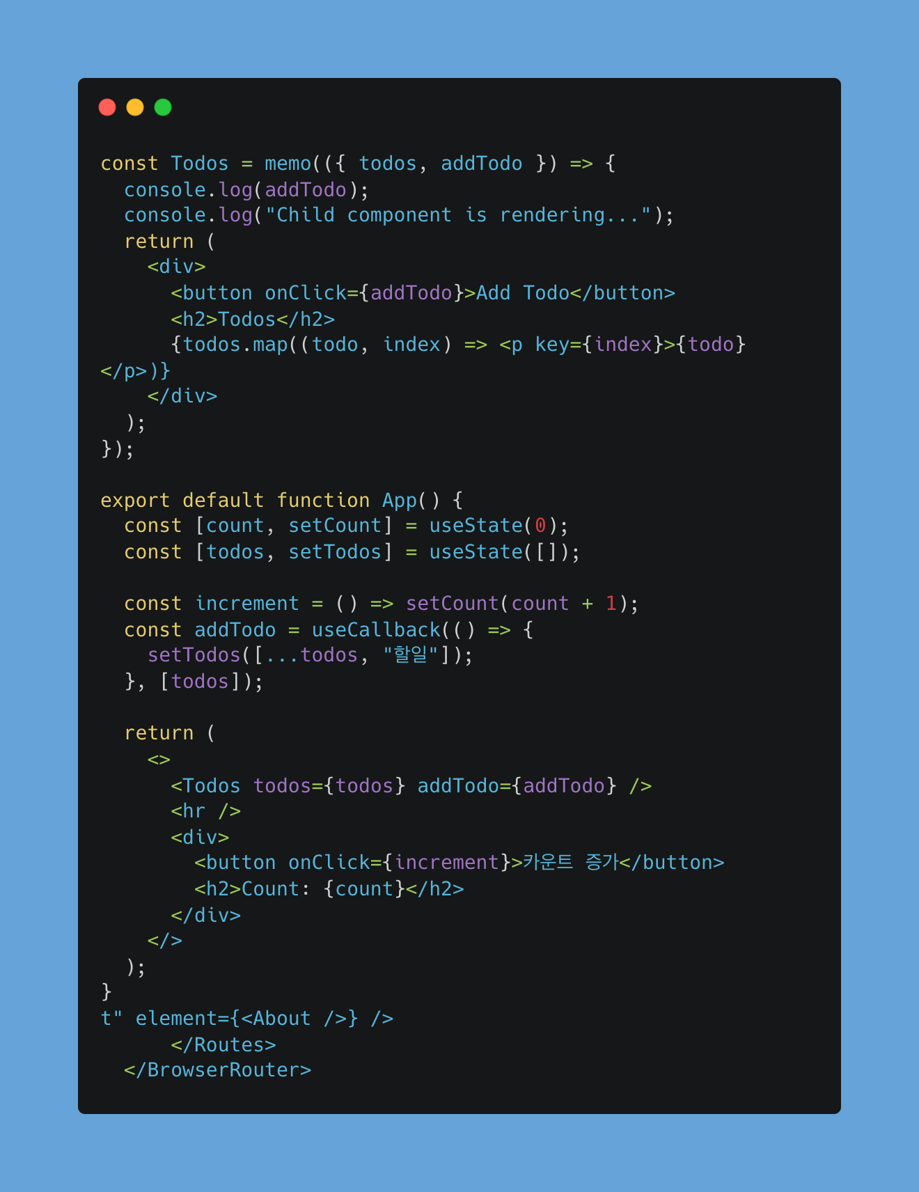 addTodo 함수의 내용이 변경되지 않았음에도 불구하고, <Todos> 컴포넌트를 리렌더링 함
