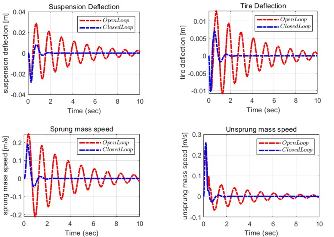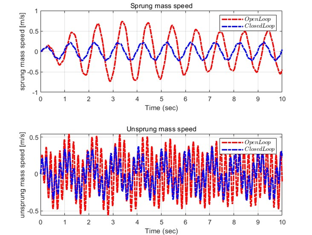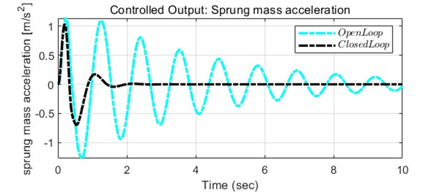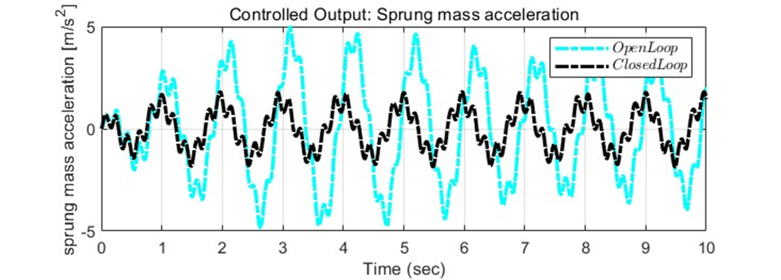 → Closed loop with controller minimize the sprung mass acceleration, which means it improves the ride quality.