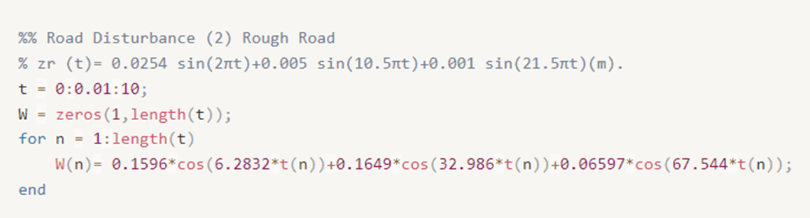 위의 matlab 코드에 disturbance 정의 부분에 bump 대신 rough road에 대한 수학적 모델링을 넣으면 다음과 같은 결과를 얻을 수 있다.