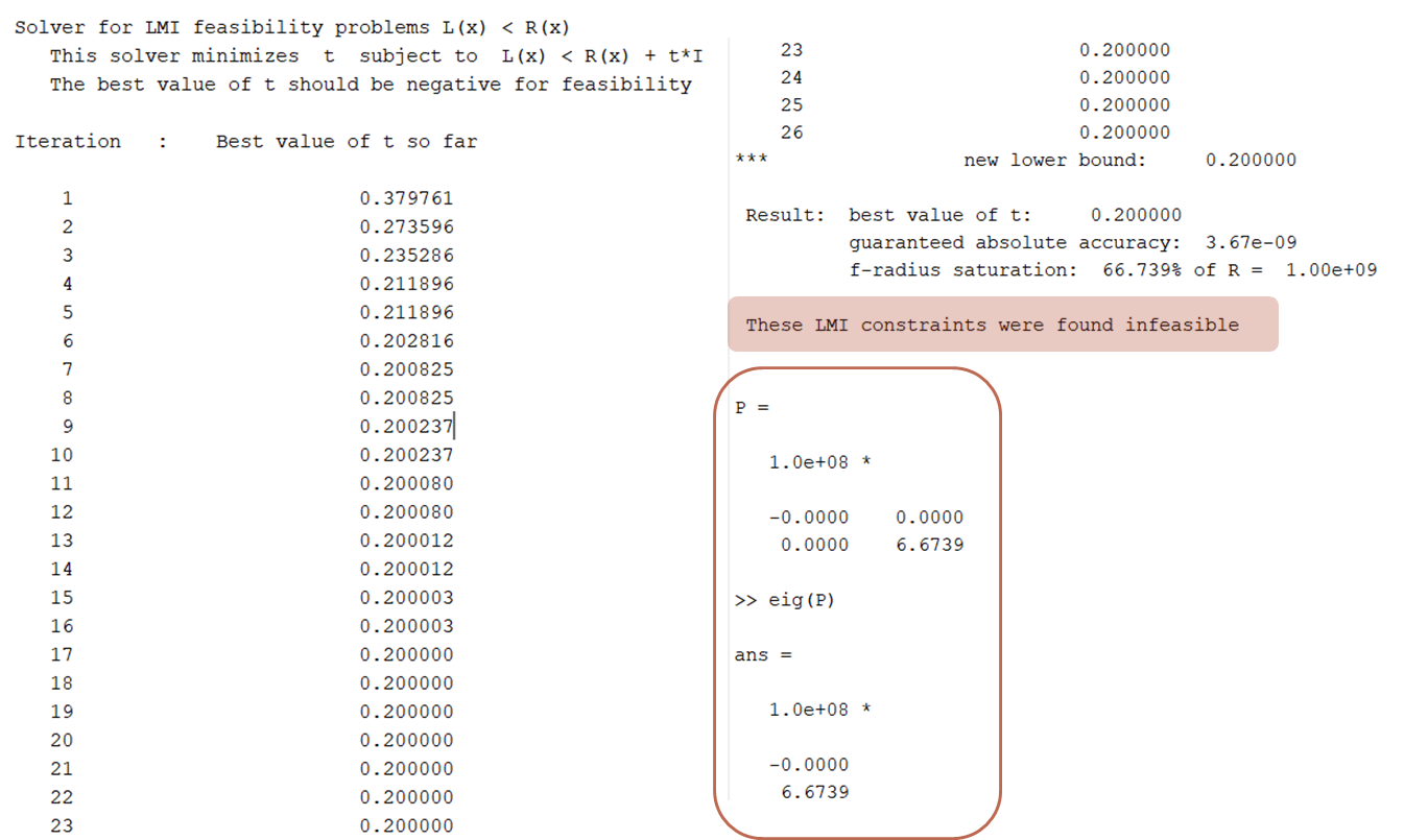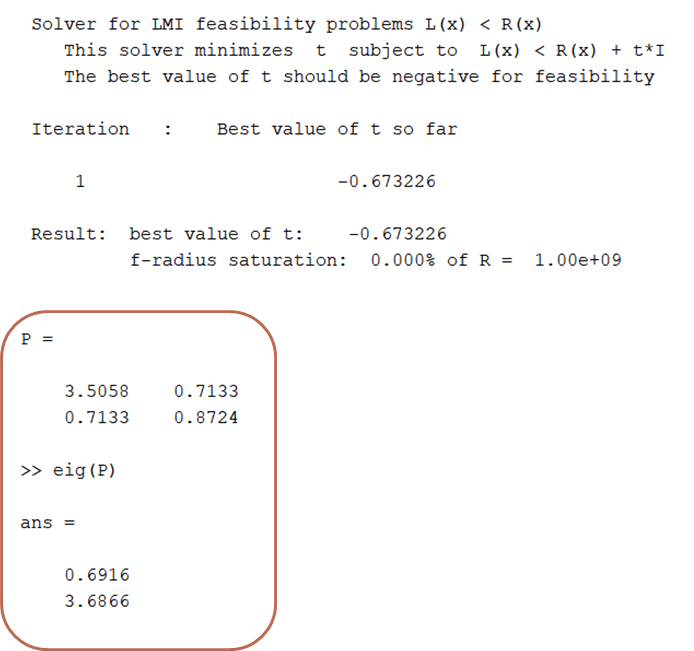 [tmin,Psol] = feasp(LMISYS); % Solution that maches best for LMI : Psol