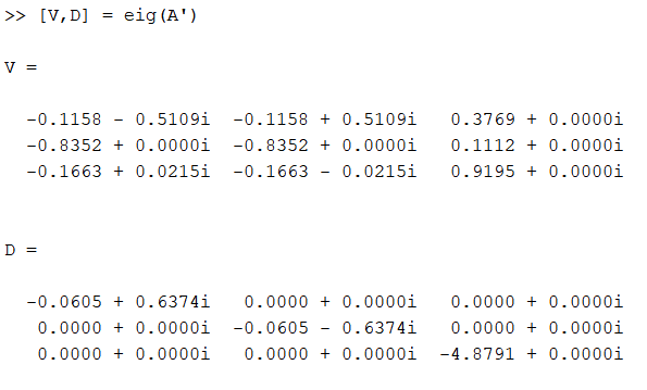 % given matrix A is [0 1 0; 0 0 1; -2 -1 -5]