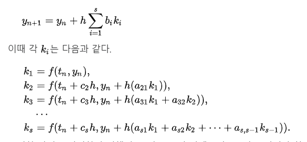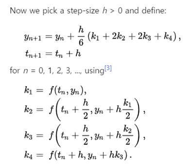 즉, 근사화 방식을 통해 분석하는 numerical method 중 하나로 4차 룽게쿠타 방식이 가장 많이 사용된다.