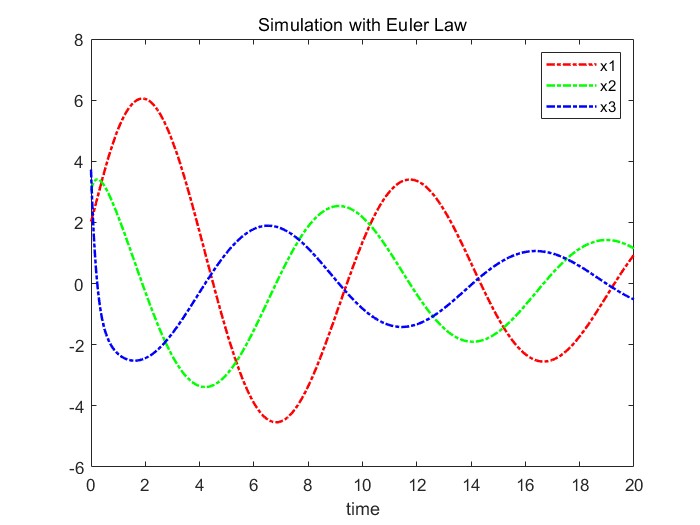 오일러 법칙을 20초간 simulation해보면 다음과 같은 결과를 얻을 수 있다.
