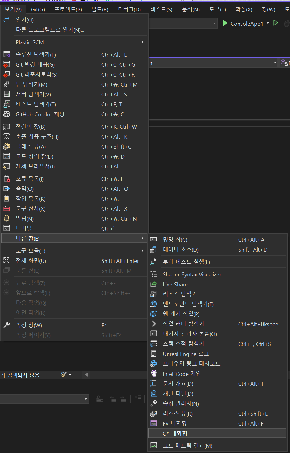 Visual Studio > 보기 > 다른 창 > C# Interactive