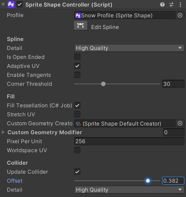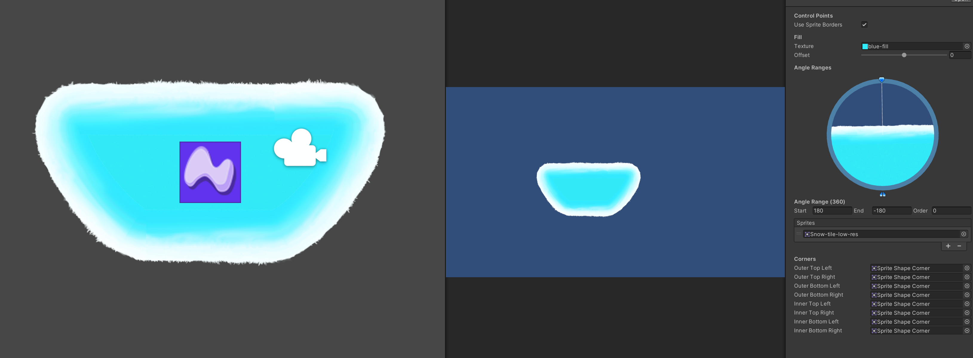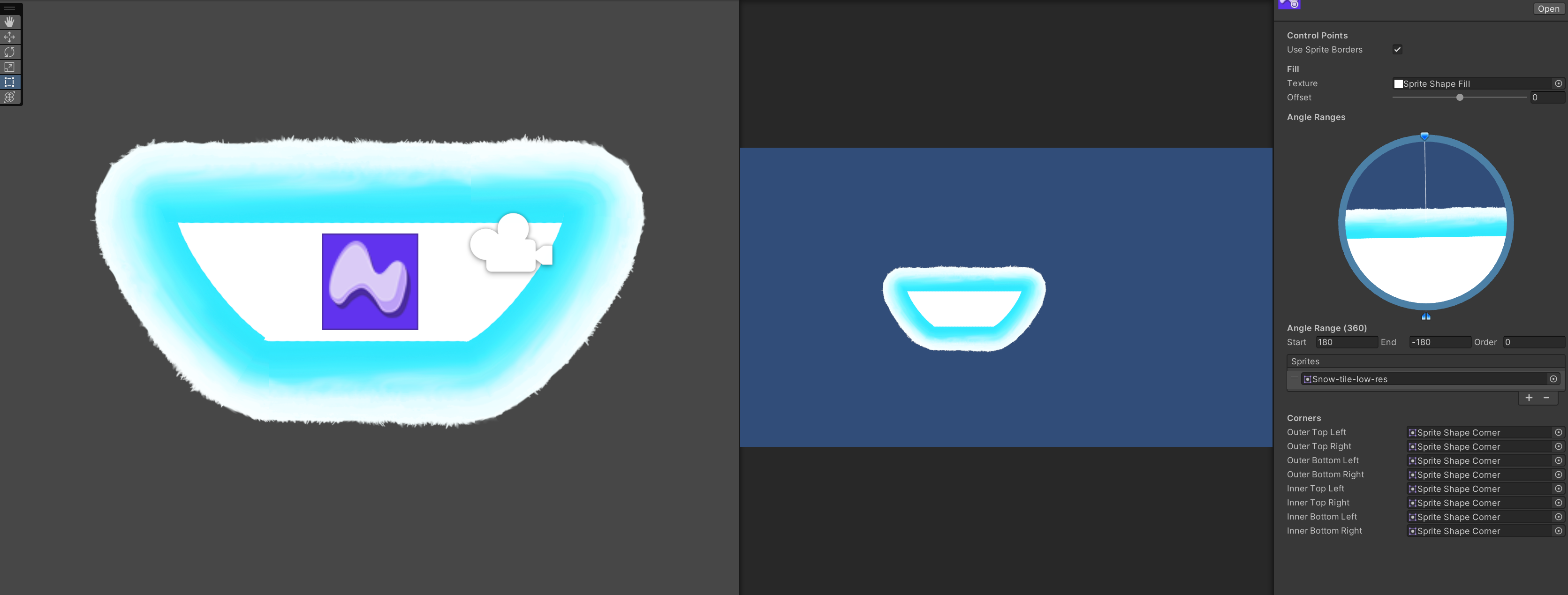 참고로 Sprite Shape가 매끄러운 곡선인 이유는 Sprite Editor에서 미리 필요한 직선 부분만 잘라놨기 때문.