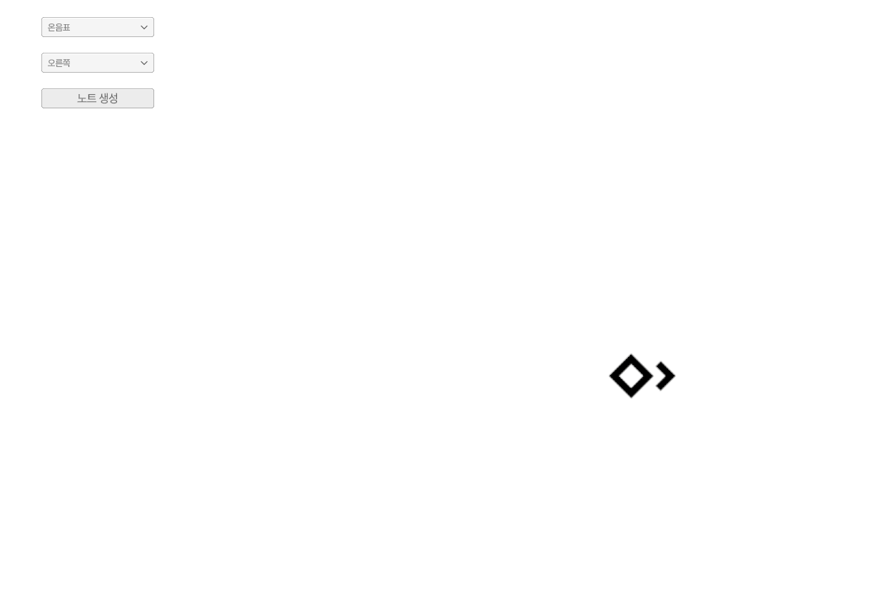 에디터에서 다음 블럭의 음표 길이와 방향을 드롭 다운으로 선택한다