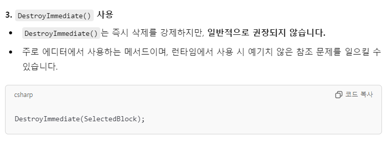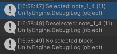 Debug.Log("No selected block. Delete failed.");