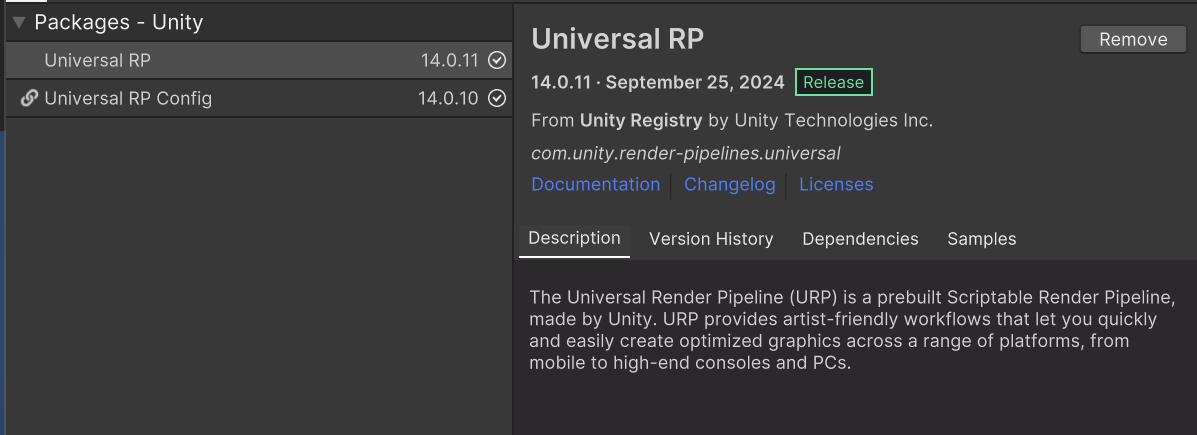 내 프로젝트에 깔려있는 URP 버전은 14.0.11이니