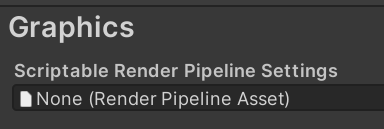 Project Settings를 확인했더니 당연히 Render Pipeline Asset은 None으로 설정돼있음.