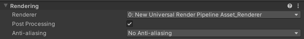 우연히 Render Pipeline Asset을 삭제했더니 포스트 프로세싱이 적용되기 시작함.