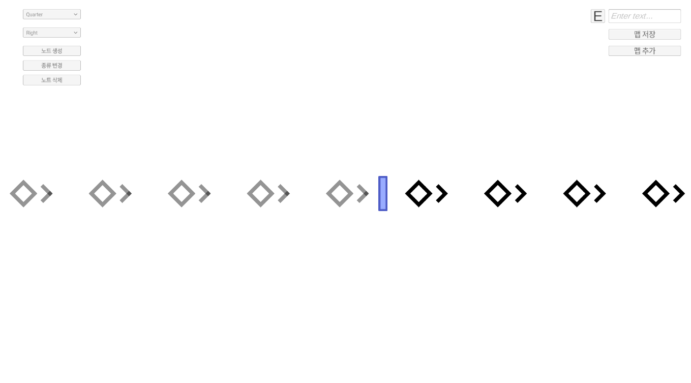 위의 코드는 플레이어를 이동시키고, 플레이어가 노트 블럭에 들어왔을 때 해당하는 키를 누르면 판정을 하는 코드이다.