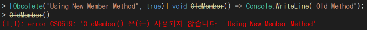 public SampleAttribute() => Console.WriteLine("사용자 지정 특성 사용됨");