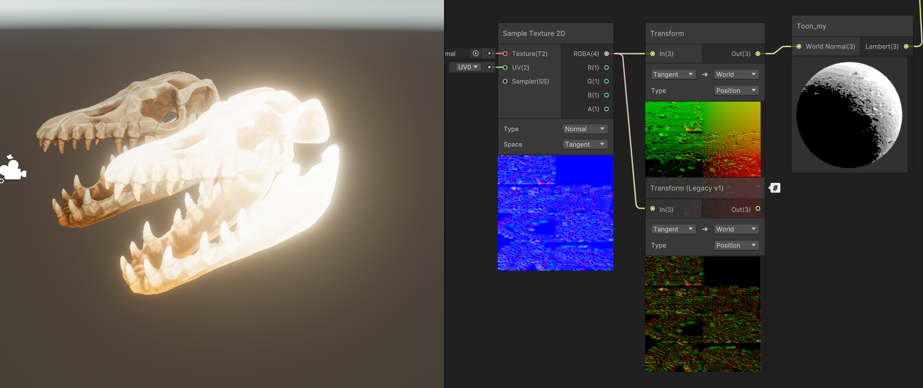 그럼 이전에는 노말맵을 어떻게 설정해놨지? 하고 보니까 Transform의 Type이 Position이 아니라 Direction으로 돼있었음.