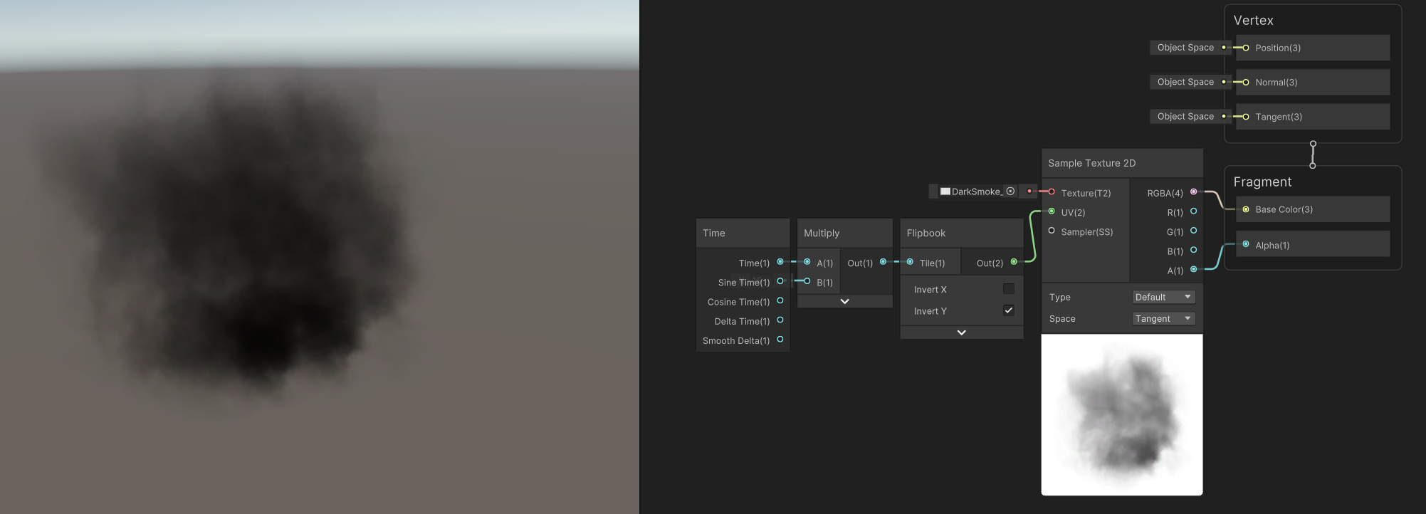 - Shader Graph > Graph Settings > Transparent : 알파 블렌딩 사용 가능하게 하기